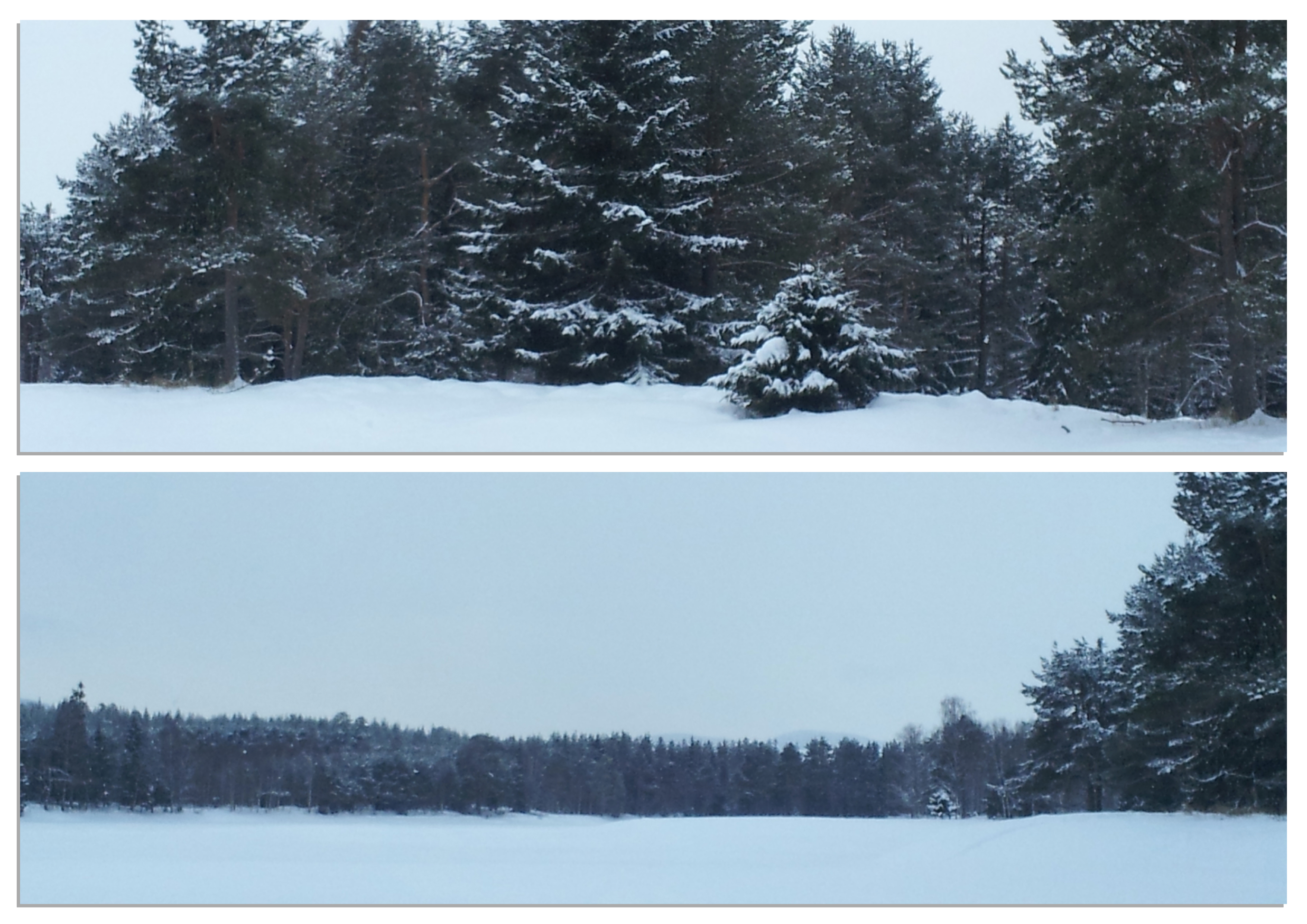 Het is moeilijk te zien maar het gaat hier om een bevroren rivier en een eiland: