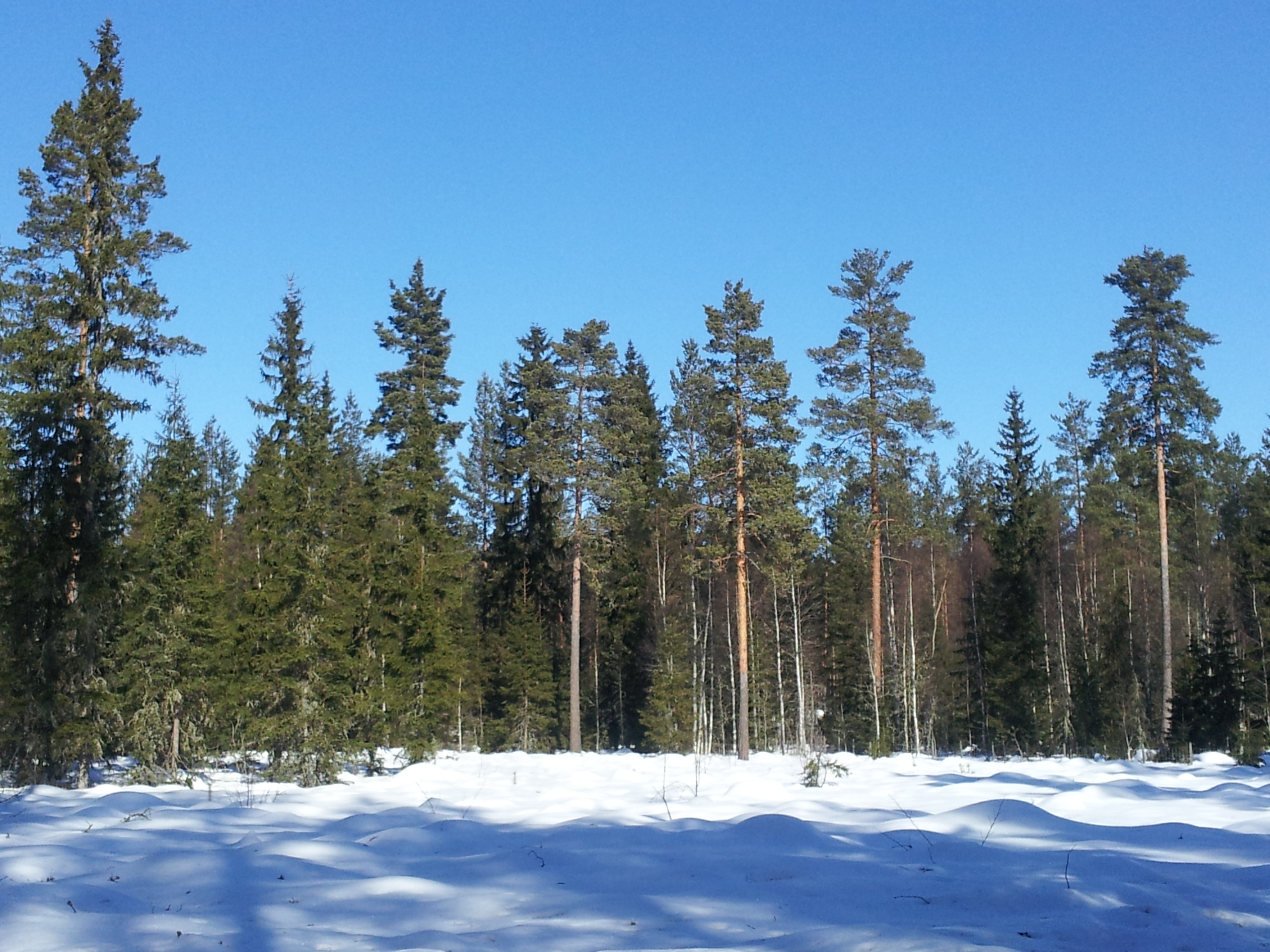 Even wat indrukken tijdens de wandeling vandaag. De laatste tijd is het hier zo´n prachtig weer geweest; `s nachts zo´n min 20 en overdag rond het vriespunt, heerlijk! De zon is echt sterk, bovendien dan ook nog de weerschijn van de sneeuw, zonnebril is onontbeerlijk!