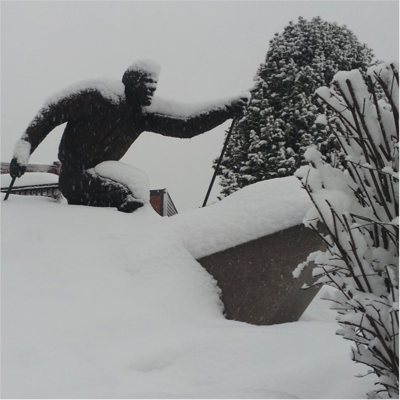 Standbeeld in de sneeuw: