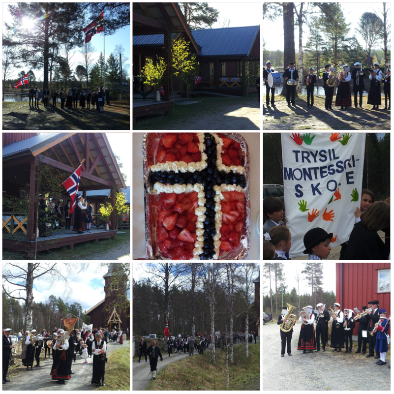 Om 8 uur vlag hijsen en volkslied spelen, daarna gezamenlijk ontbijt, speeches, naar de dienst in de kerk, vervolgens optocht naar het gemeenschapshuis, alwaar een warme maaltijd wacht, en optredens van de kinderen van de voorschoolse opvang en de Trysil Montessoriskole: