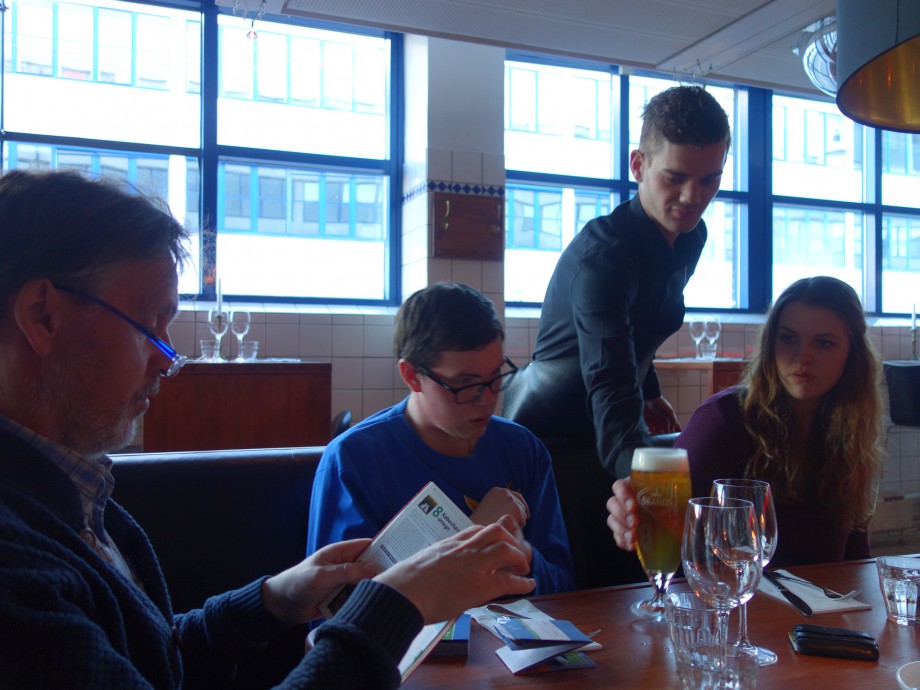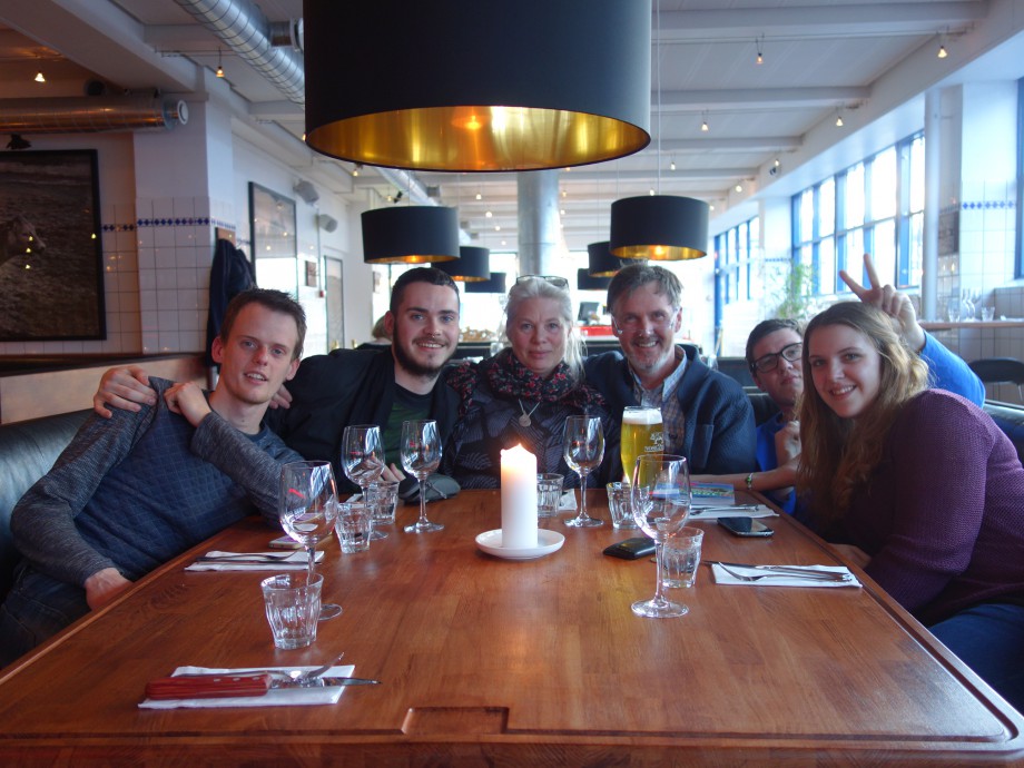 Onze kinderen en ´schonezoon´ hadden een verrassing voor ons! Rond 18.00 uur werden we meegenomen door Kopenhagen om uiteindelijk in een bijzonder restaurant te belanden. Daar werden wij getrakteerd op een heerlijk diner! Geweldig dat zij dit voor ons doen, allevier arme studenten!