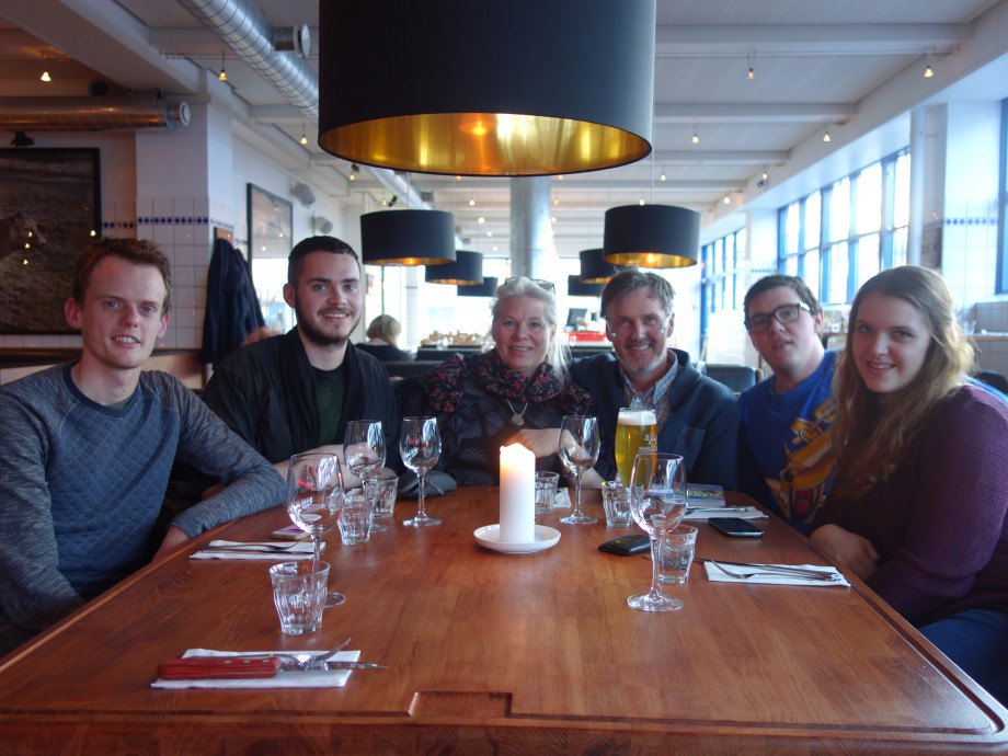 Barna og svigersøn våre hadde en overaskelse for oss. Vi ble tatt med rundt i København om etter hvert kom vi til en spessiell restaurant. Der fikk vi en deilig middag! Supert at de gjorde det for oss, alle fire fattige studenter!