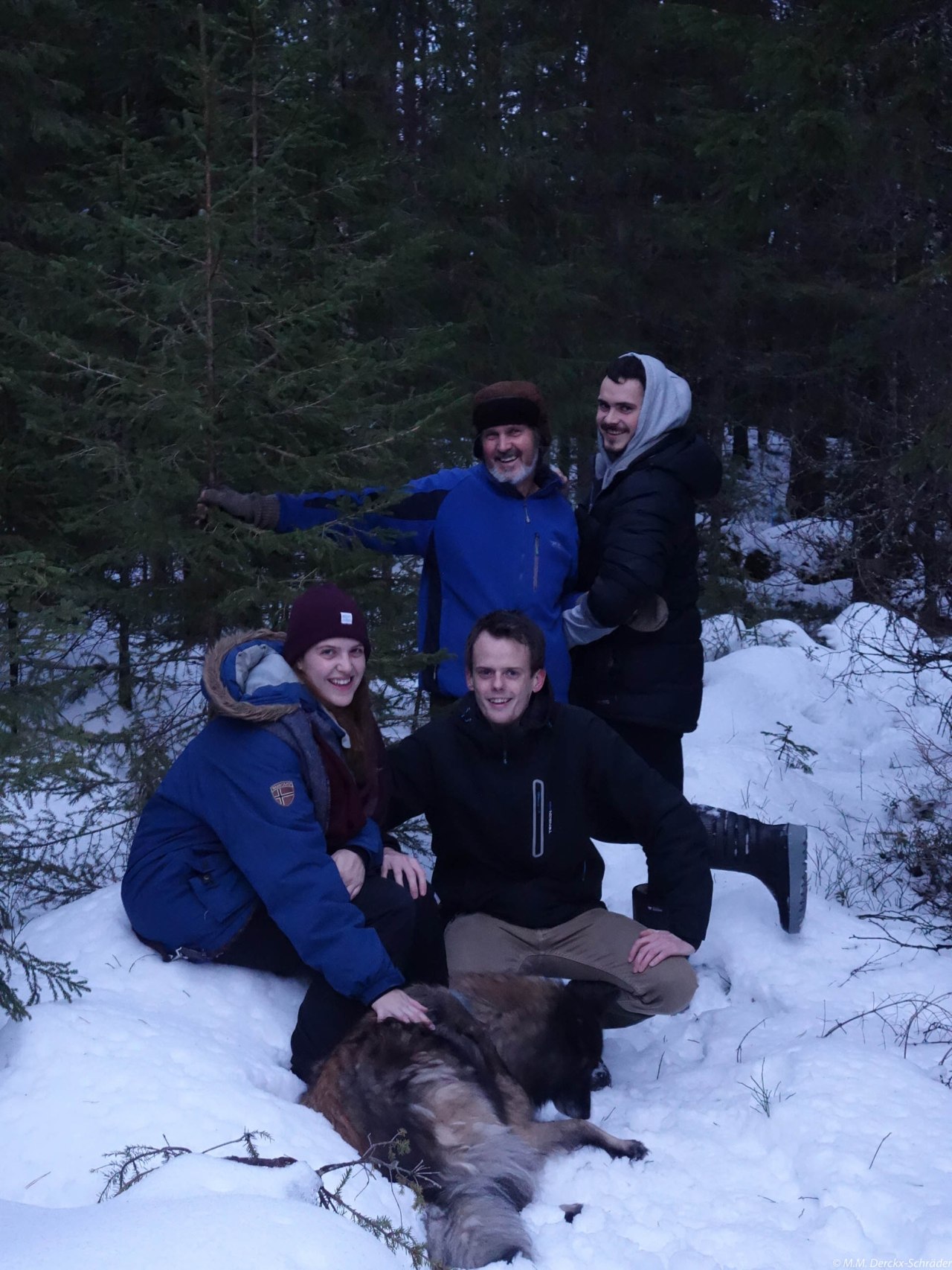 Tomas, Janneke en Ingmar waren op woensdagavond voor kerst aangekomen. Donderdag hebben we een kerstboom uit het bos hier gehaald. Dat blijft iedere keer weer bijzonder, en ook geen makkelijke opgave om een goede boom, tussen al die bomen, te vinden.